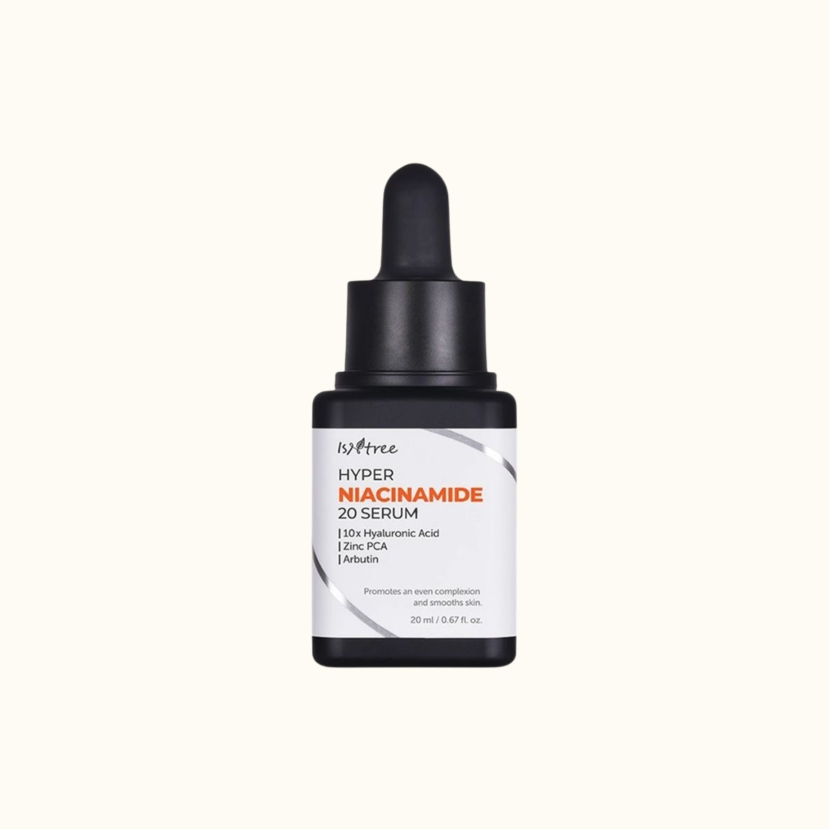Niacinamide er af gode grunde én af de mest efterspurgte ingredienser, når det gælder om at komme pigmentering eller acne til livs på en skånsom måde, som ikke ødelægger hudens egen vigtige fugtbalance. Isntree har formuleret en lille superpotent genistreg af en serum hele 20% niacinamide, hvor de gode talgbalancerende og udjævnende effekter fra fra niacinamide kombineres med zinc, som har antibakterielle og helende egenskaber. I samarbejde med arbutin, som hæmmer pigmentdannelsen dybt i husen, reduceres hyperpigmentering, mens rødme og pigmentering fra acnear reduceres for en mere jævn hudtone, mens hyaluronsyrer booster hudens fugtniveau og reducerer irritation. En fantastisk lille serum, som pga. sin størrelse på 20 ml både er prismæssigt nem at komme igang med, og pga sin størrelse sikrer, at du når at bruge produktet, mens det er allermest aktivt. Niacinamide 20 serummet kan også med fordel kombineres med Hyper Retinol Ex serummet, hvis du også vil arbejde på alderstegn, da retinol og niacinamide arbejder godt sammen uden at overaktivere huden.