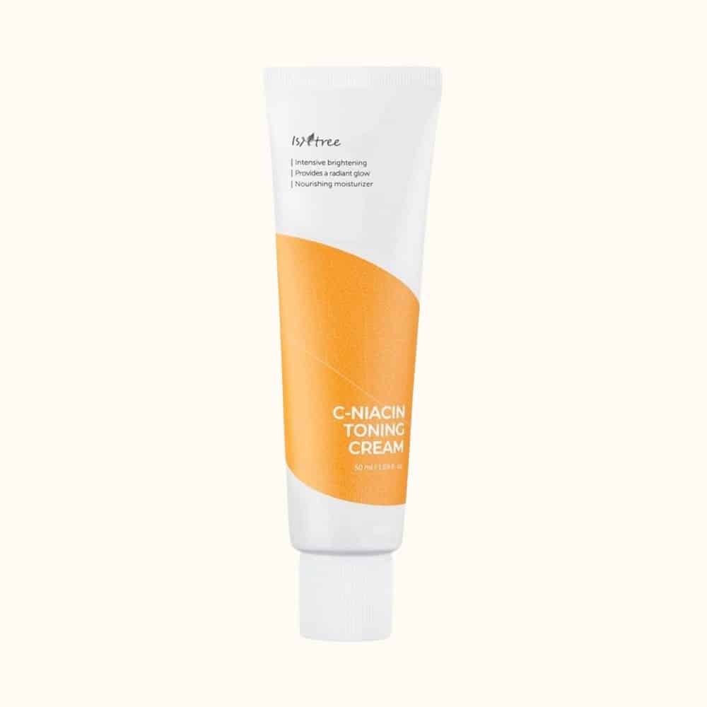 Isntree C-Niacin Toning Cream er en let men særdeles effektiv fugtighedscreme baseret på hele 69% havtornekstrakt som hovedingrediens. Havtorn, som er naturligt rigt på vitamin C, E og antioxidanter, hjælper med at beskytte huden mod miljøpåvirkninger og understøtter hudens naturlige fornyelsesproces, samtidigt med at hyperpigmentering mindskes. Den lysnende effekt forstærkes yderligere gennem Isntrees patenterede VITA 10 Complex. Komplekset består af ti vitamin C-rige frugtekstrakter, herunder goji-bær, acai og camu camu, som tilføjer yderligere antioxidantbeskyttelse og næring til huden for en optimal støtte til en smuk naturlig glød. Den milde A-vitamin variant retinyl palmitat sætter skub i hudens celleomsætning, hvilket sikrer at pigmenterede celler hurtigere bliver sendt til hudens øverste lag, hvor de naturligt afstødes under vask eller ved eksfoliering. Cremen virker med sin kombination af C-vitamin, der stabiliserer kollagen-fibrene i huden og den milde A-vitamin også let anti-aging, hvilket gør den til et godt valg til dig, der stadig er ung men gerne vil arbejde med de første fine linjer eller sikre din huds smukke glatte udseende længst muligt.